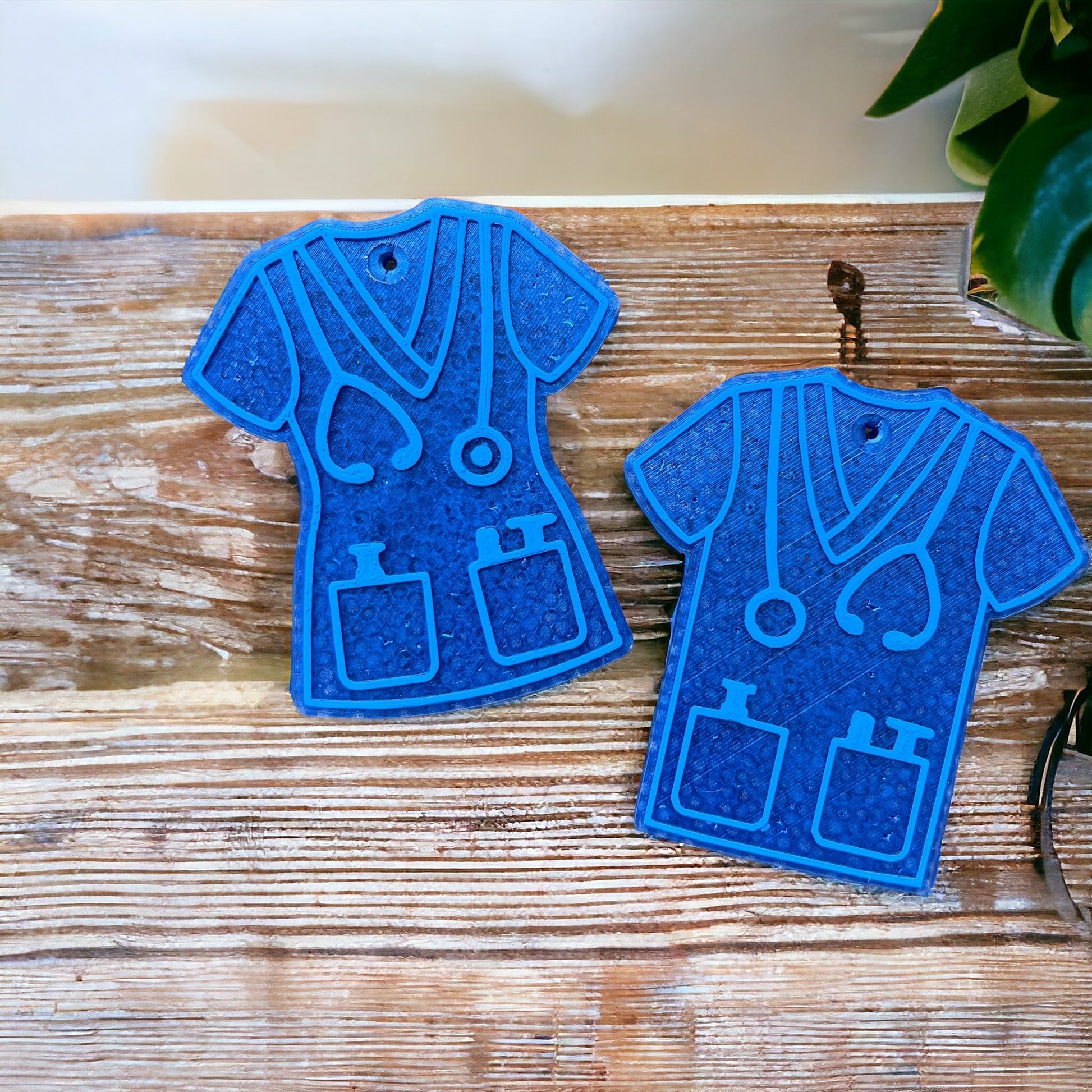 Introducing the Blue Scrub Top Freshie! Keep your car smelling fresh (and stylish) with our scrub top shaped car freshie. Perfect for medical professionals on-the-go. Don't settle for boring air fresheners, show off your personality with our Freshie.