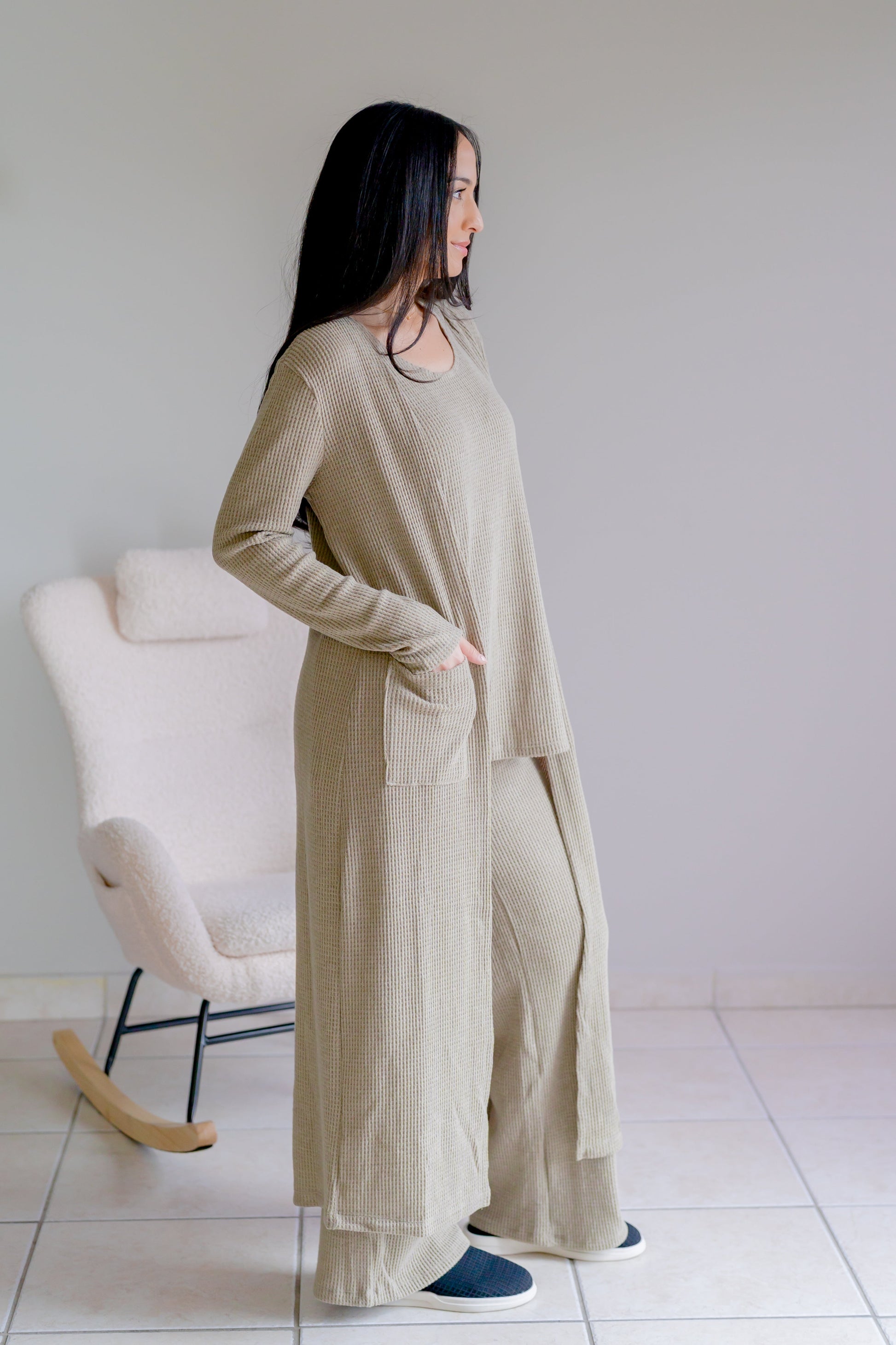 Introducing the Come Together Set—your new go-to for effortless style! This gorgeous 3-piece brushed thermal collection features a sleeveless tank, oversized long cardigan, and relaxed pants that work together beautifully. Perfect for cozy lounging or elevated everyday wear, this set proves you don't need much to look put-together. Mix, match, and feel amazing this season!