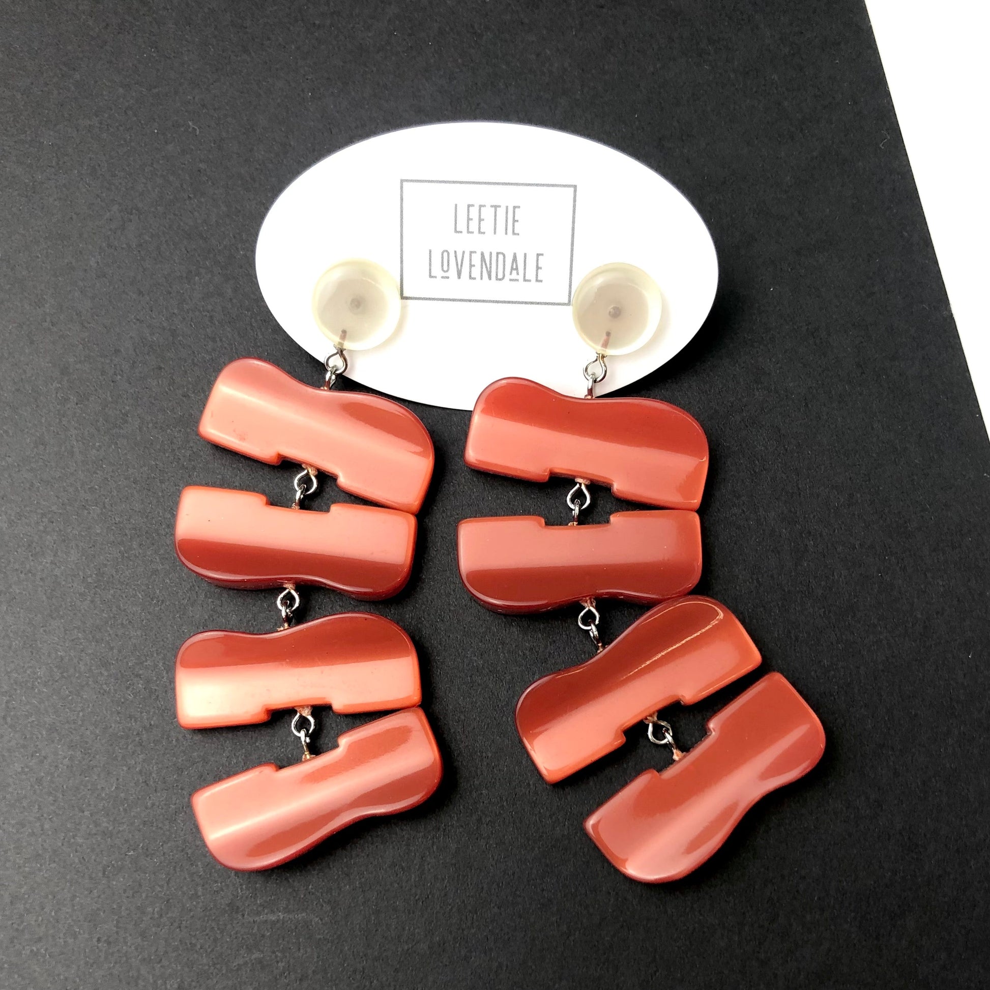 Copper & Ecru Buckle Stack Moonglow Statement Earrings