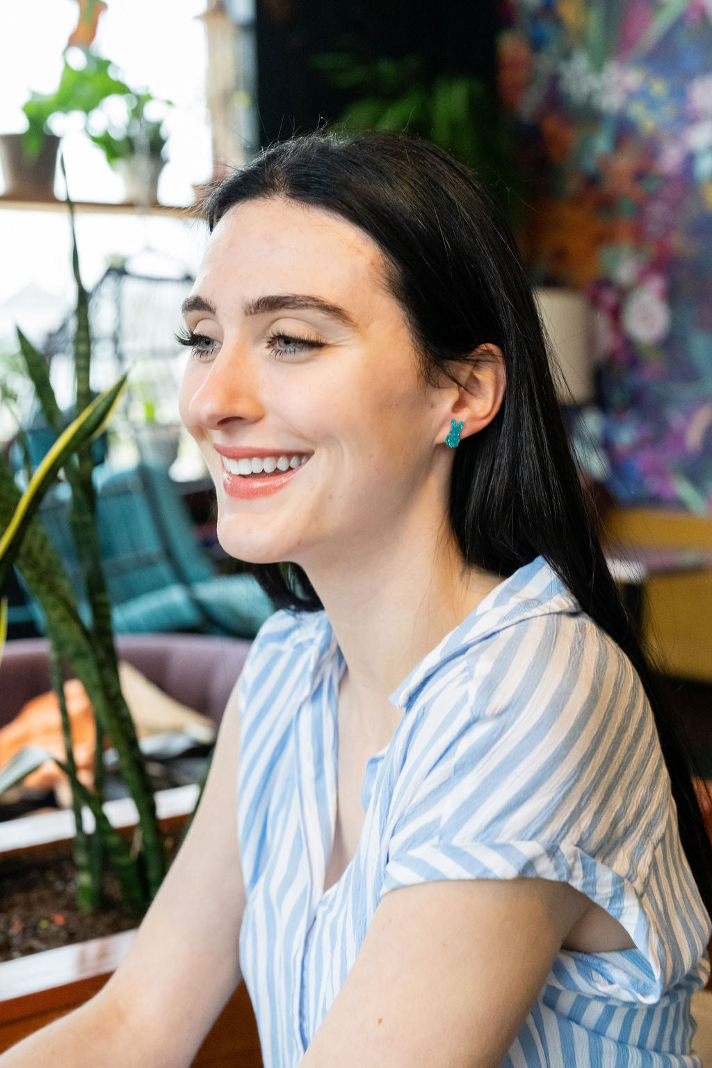 Sparkle bright this Easter with these adorable bunny stud earrings! Made from high-quality, glittery acrylic, they're the sweetest accessory for your springtime wardrobe.