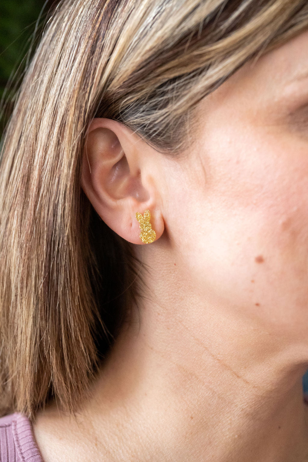 Glitter Bunny Studs - Yellow