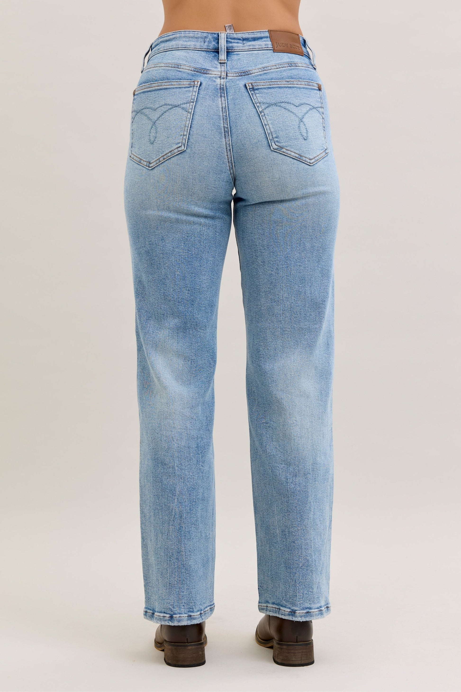 The Heather Mid Rise Rigid Magic Straight Jeans from Judy Blue are the real deal—comfort and style wrapped up in one seriously wearable package! Built with 4-way stretch fabric, they move with you without losing their shape thanks to the rigid magic construction. The mid-rise fit and button fly give you that timeless denim look, while the light distressed hem brings a playful edge. Straight through the leg and ready for anything, these jeans are about to become your absolute favorite.
