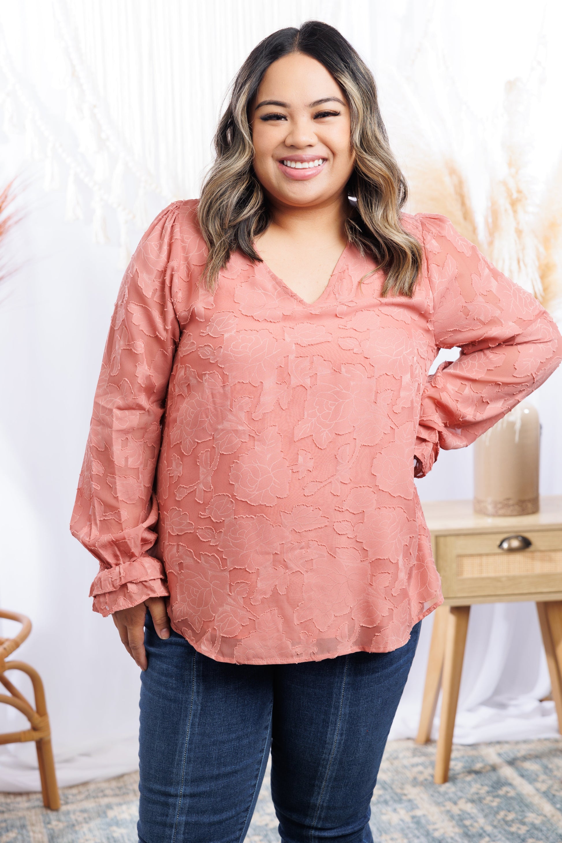 Bring a touch of effortless elegance to your wardrobe with our Pink Rose Long Sleeve. Featuring a v-neck, flowy bottom, long sleeves with elastic cuffs, and a ruffle trim, you'll be exuding rose-tinted style with every outfit!