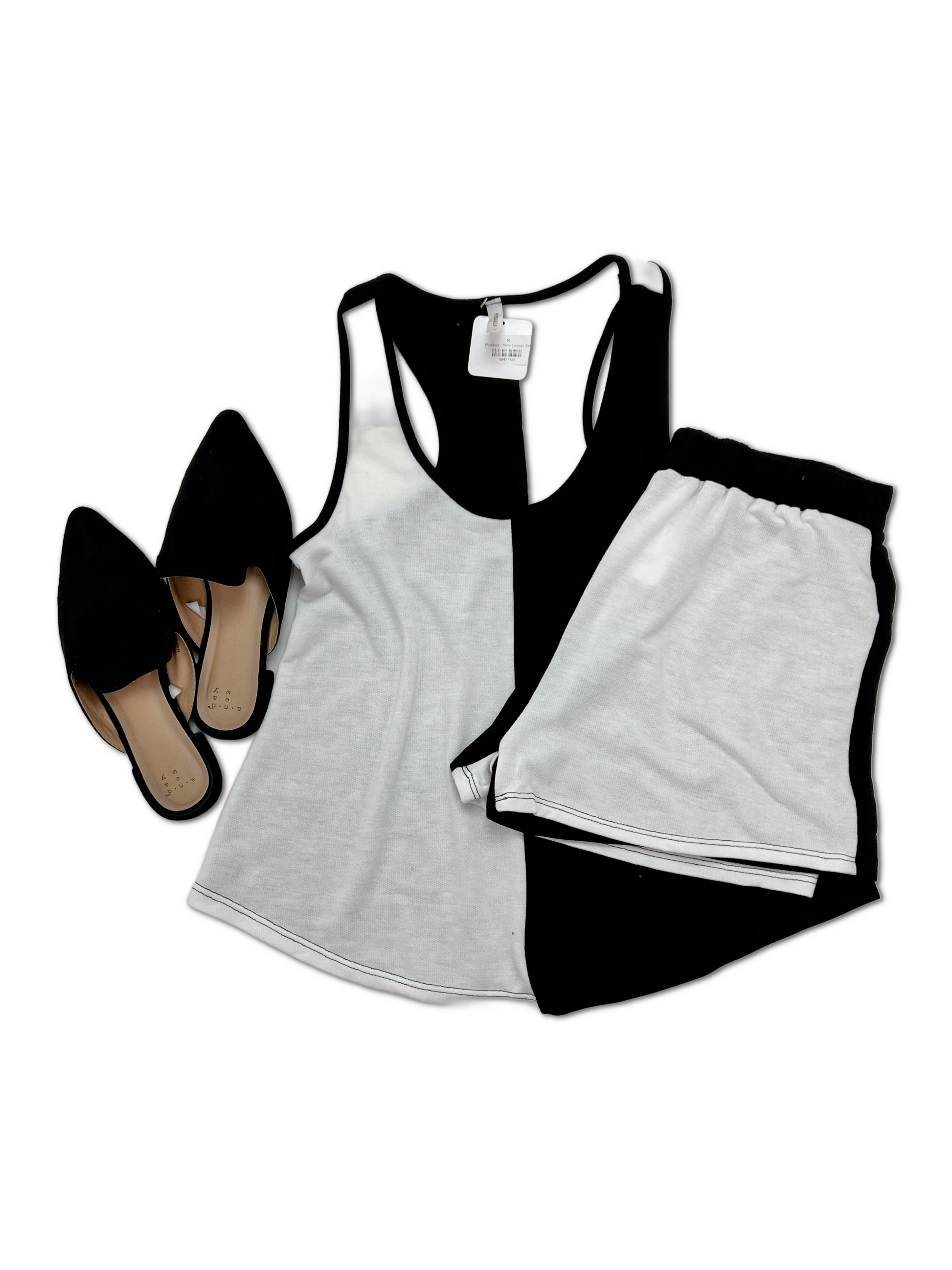 Dive into style with our Poolside Terry Lounge Set! Made of soft terry material, this matching set features a playful color block design in yellow and white. Feel free to race around while staying cool and comfortable with the racerback tank top. A must-have for your summer wardrobe!!