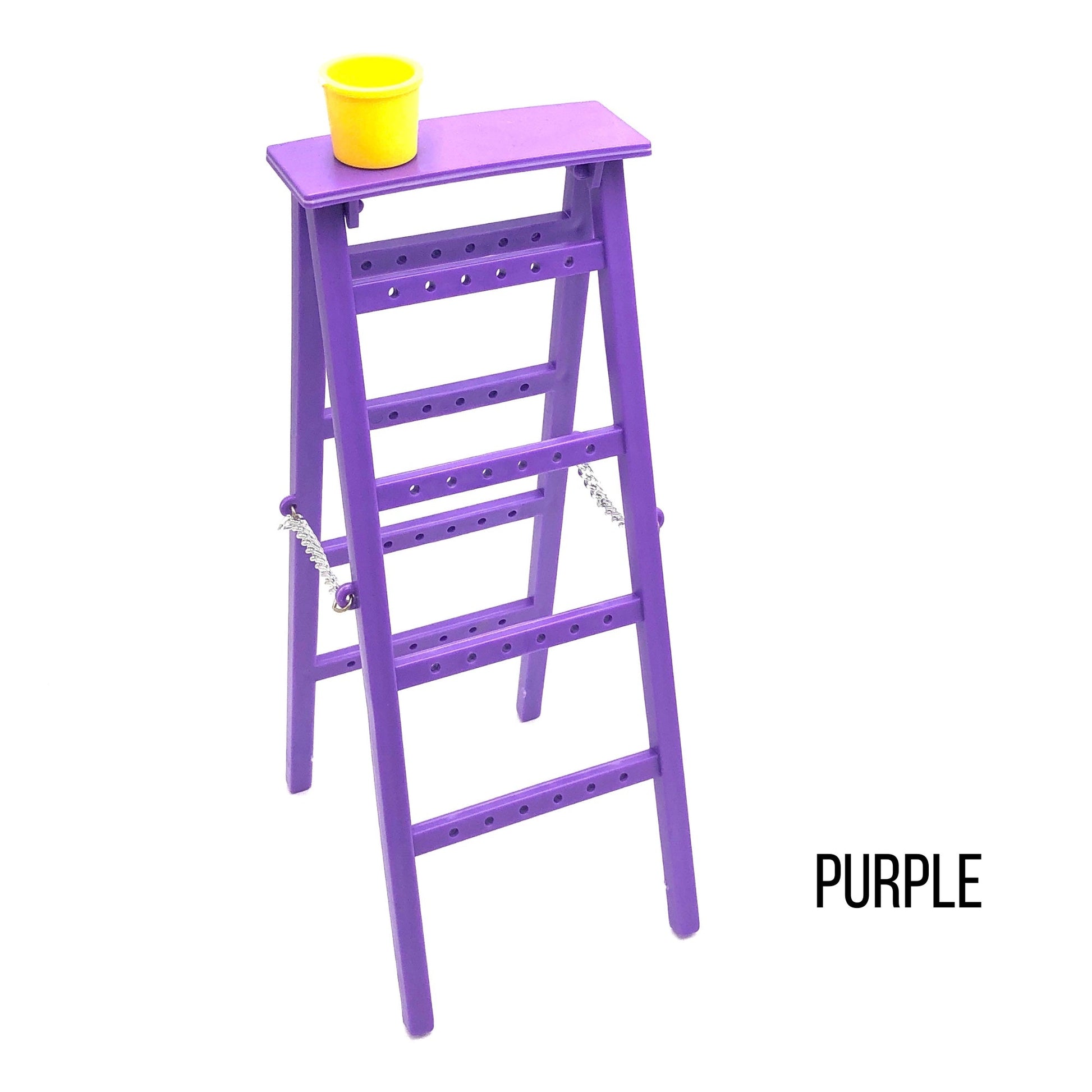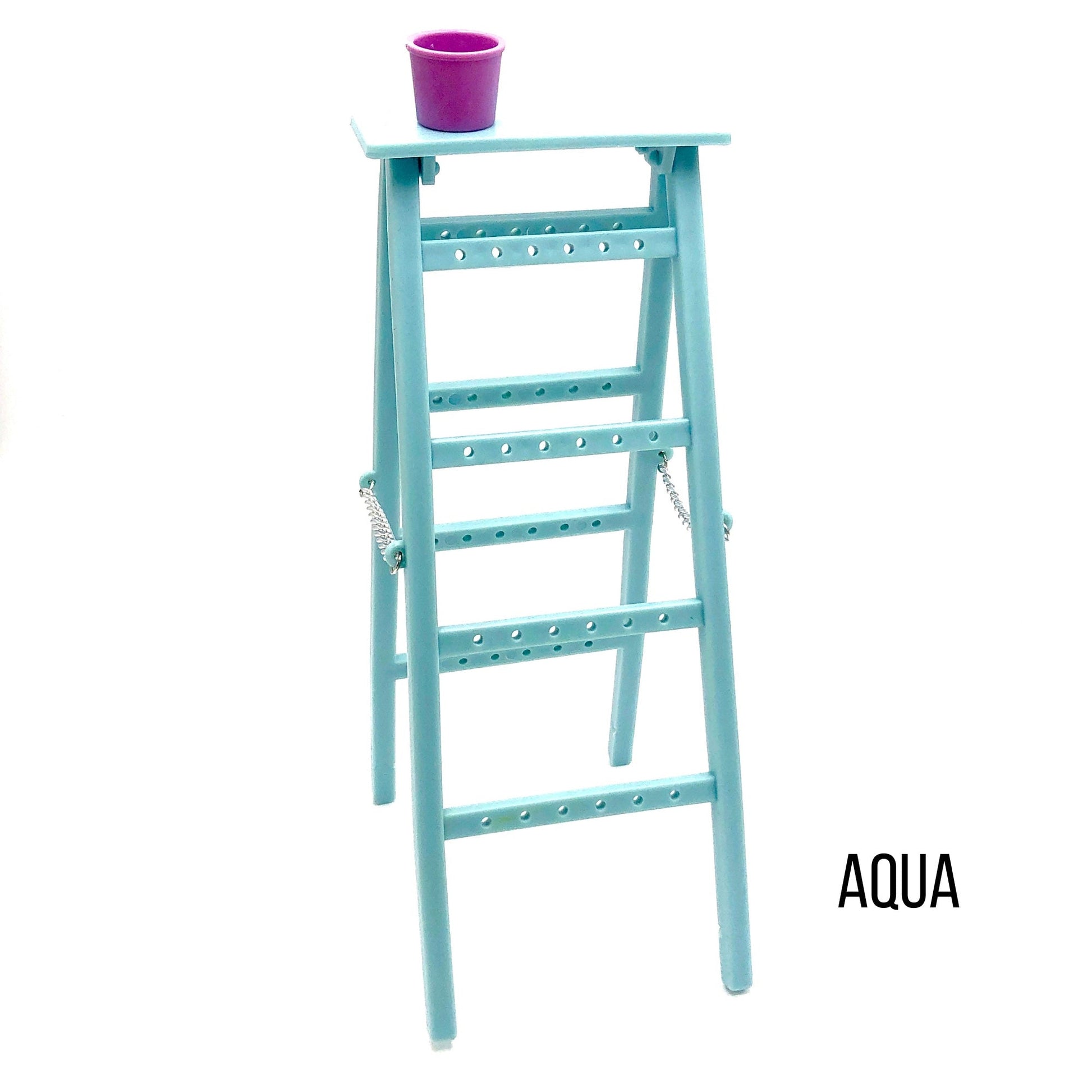 SO 1980's! A vintage earring organizer in the style of painter's ladder with a little pail at the top, perfect for storing and organizing smaller earrings and earring backs. True vintage find! These were made in the '80's in a sturdy white plexi.